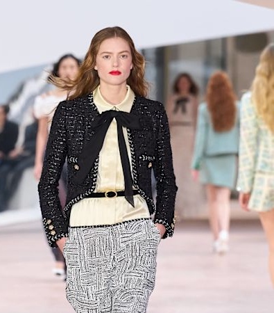 Η πασαρέλα άνοιξε με σύνολα τουίντ, τα διαχρονικά ταγιέρ της Chanel, που φάνταζαν σύγχρονα μέσα από παστέλ αποχρώσεις όπως το κίτρινο, το aqua green και το λιλά. Στη συνέχεια, η παλέτα ζωντάνεψε με πιο έντονες αποχρώσεις για να κορυφωθεί με βραδινά σύνολα: αέρινα φορέματα από μουσελίνα και σατέν, κάποια στολισμένα με πούλιες που καθρέφτιζαν το φως σαν αστραφτερά πετράδια.