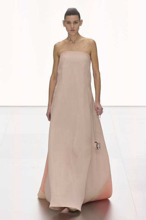 Tα κομμάτια μιλούσαν ιδιαίτερα στη λαμπρή φαντασία της υψηλής ραπτικής. Σίγουρα δεν έλειψε η υφή. Οι κυματισμοί από ύφασμα ήρθαν με πτυχωτές maxi τουαλέτες και τα διαφανή όμπρε εξώπλατα φορέματα με χάντρες είχαν μια απαλή λάμψη. Τα λεπτά μετάξια φαινόταν να επιπλέουν στον διάδρομο.