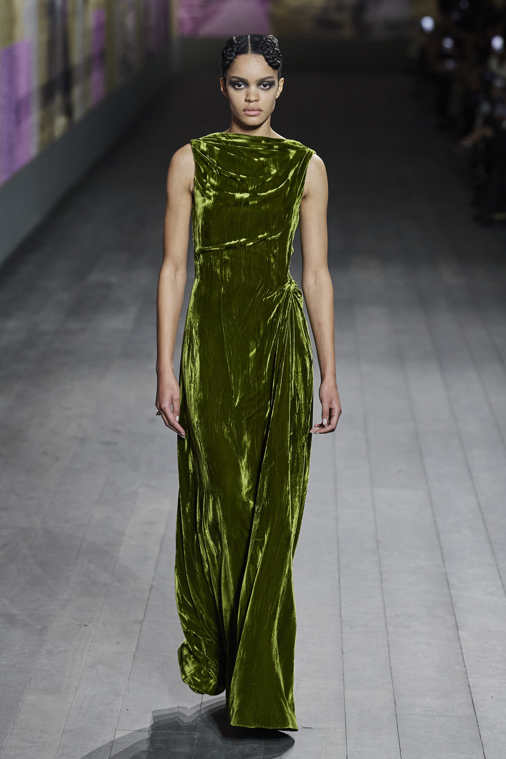 Το show πραγματοποιήθηκε στο Petit Palais, που έμοιαζε με μια πρωινή βόλτα στο θέατρο. Στο front row καθόταν η Marisa Bernson, η Kylie Jenner, η Diane Kruger, η Rossy De Palma, η Doja Cat και η Philippine Leroy Beaulieu από τη σειρά Emily in Paris. Ενώ στην πασαρέλα περπάτησαν η Naomi Campbell και η Irina Shayk.